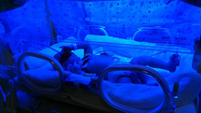 是降低血清未結(jié)合膽紅素簡單而有效的方法,將新生兒臥于光療箱中,雙眼用黑色眼罩保護,以免損傷視網(wǎng)膜,會陰、肛門部用尿布遮蓋,其余均裸露。用單面光或雙面光照射,一般經(jīng)過24-48小時,黃疸的情況即能得到明顯的改善。