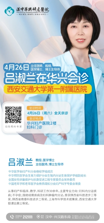 你有月經(jīng)異常嗎?你想讓更年期晚到嗎?4月26日,我院特邀西安交通大學(xué)第一附屬醫(yī)院婦產(chǎn)科呂淑蘭教授開(kāi)展義診活動(dòng),在西安一號(hào)難求、來(lái)華興親自面診,為您提供全方位的健康指導(dǎo)。